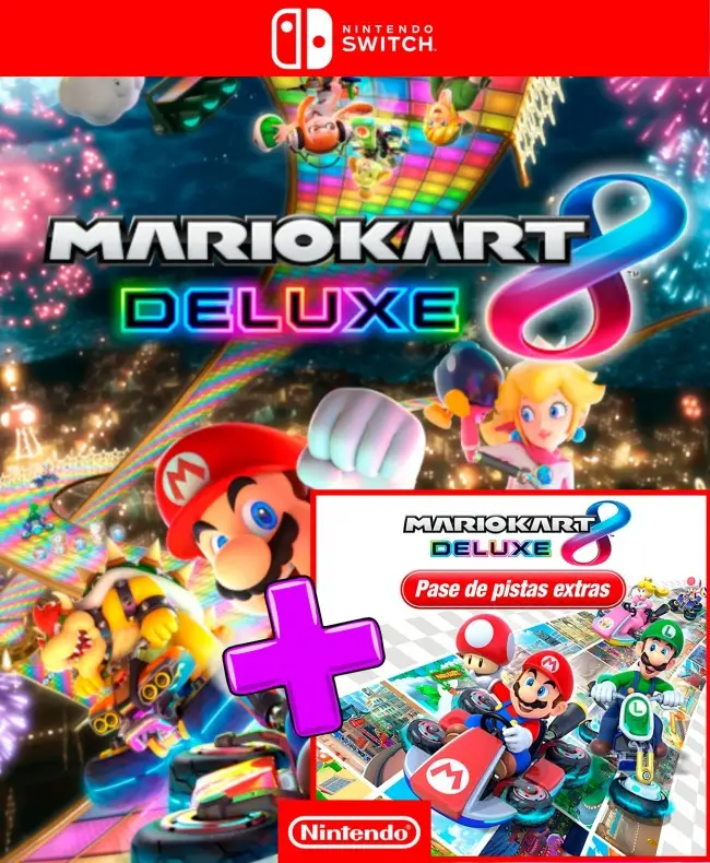 Quema llantas en las pistas del Reino Champiñón (bajo el agua, en el cielo, boca abajo en gravedad cero y más allá de la meta) para ganar! ¡Prepárate para el multijugador local, los torneos en lÃnea*, un modo de batalla renovado y más! Además, obtén el doble de pistas con el DLC Mario Kartâ„¢ 8 Deluxe – Booster Course Pass incluido. Corre en 48 pistas más como Wii Maple Treeway, DS Waluigi Pinball y Tour Paris Promenade. ¡